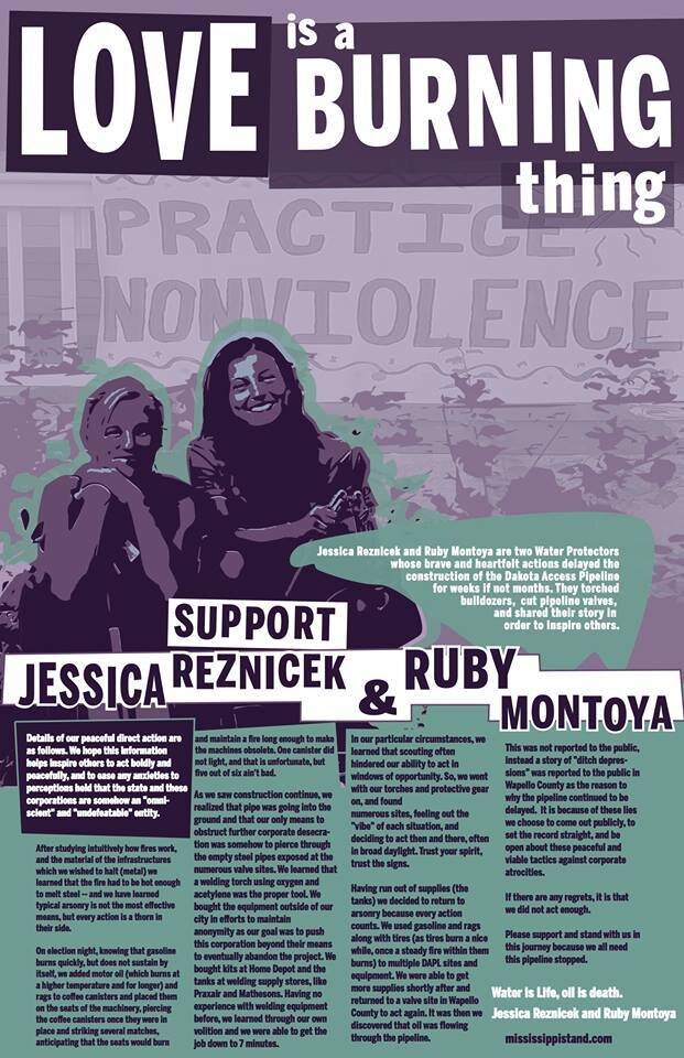 Jennifer Murnan and Max Wilbert of Deep Green Resistance interviewed Ruby Montoya and Jessica Reznicek following their press release claiming responsibility for multiple incidents of sabotage of the Dakota Access Pipeline and construction equipment. Listen to the audio, or read the transcript: